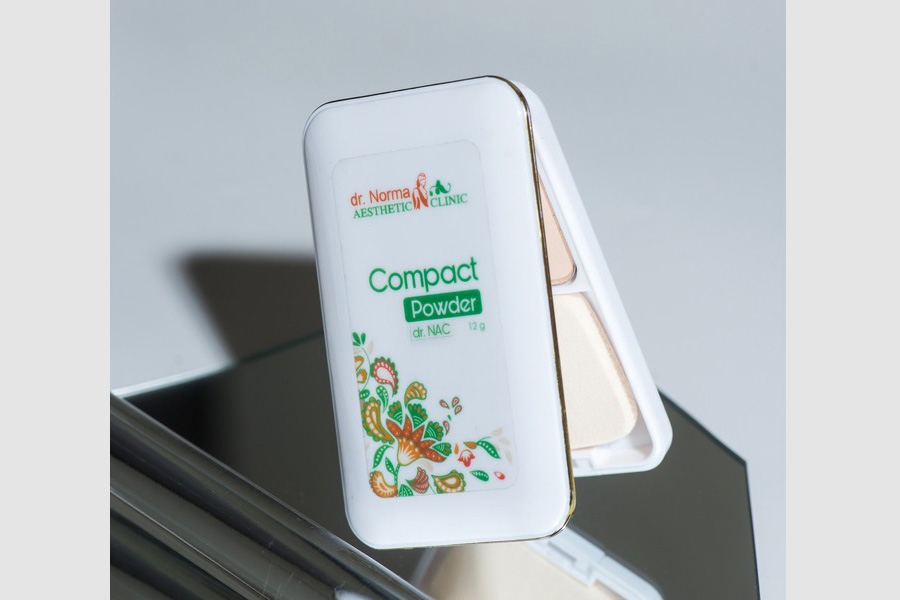 Gunakan puff, pakailah bedak tipis dengan cara menepuk secara perlahan ke wajah.