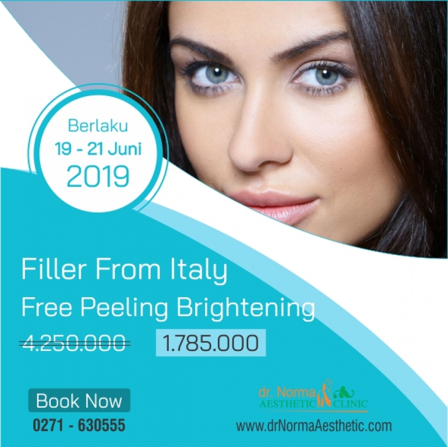 Hai sobat dr Norma...satu lagi Super Promo dari *dr Norma Aesthetic Clinic* Perawatan *Filler* dari *Italy* plus *Free Peeling Brightening* *~4.250.000~ 1.785.000*